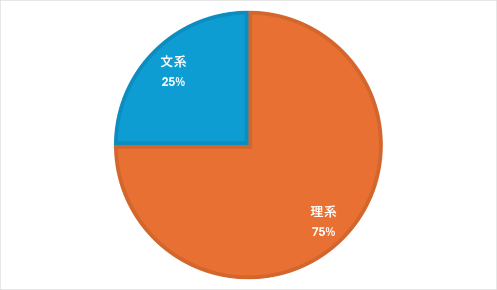 下記のグラフの通りズバリ、とまではいきませんがやっぱり理系が多いですね。