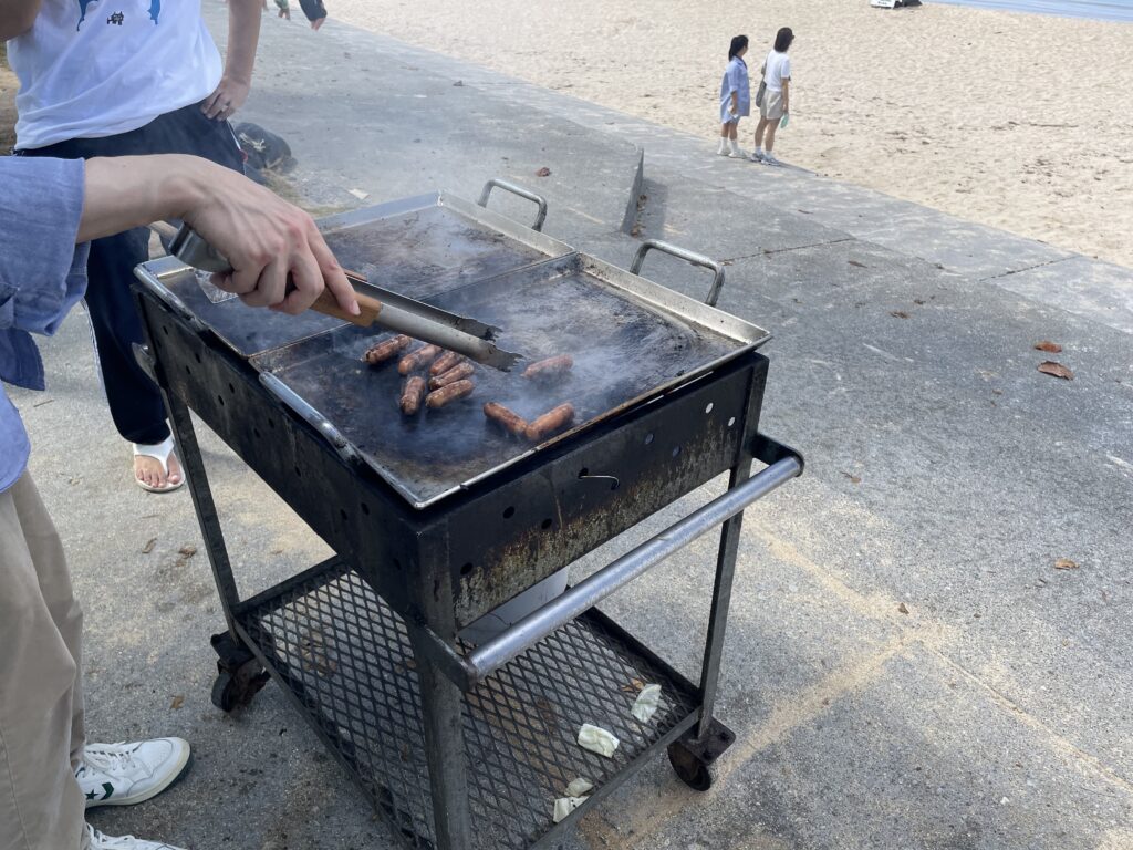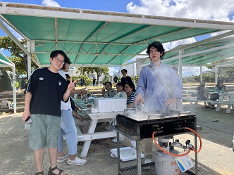 レンタルした機材で火を起こして、料理も始めます。沖縄風の焼きそばやお肉を焼き、皆さんと美味しくいただきました。